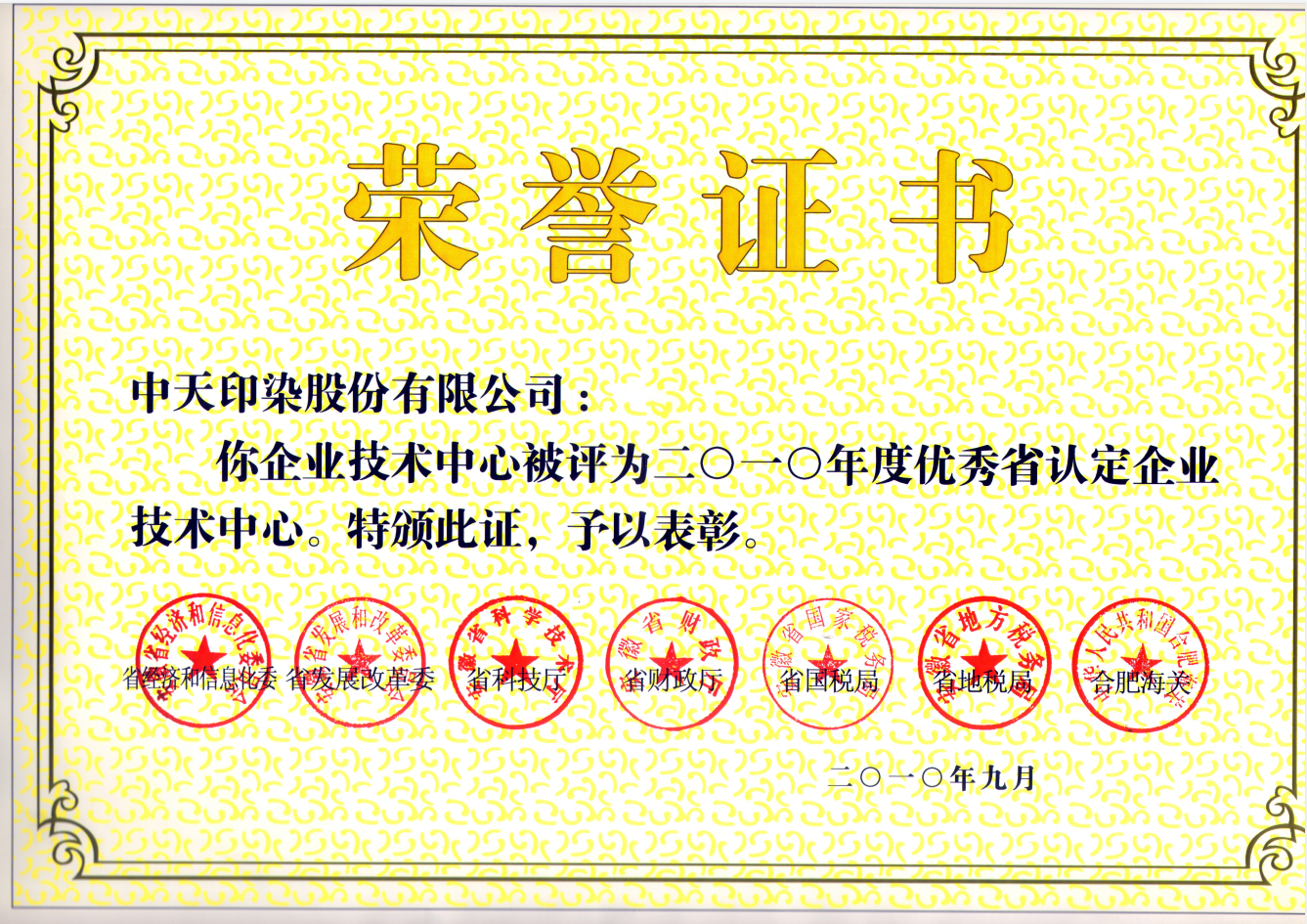 2010年度省優(yōu)秀企業(yè)技術(shù)中心