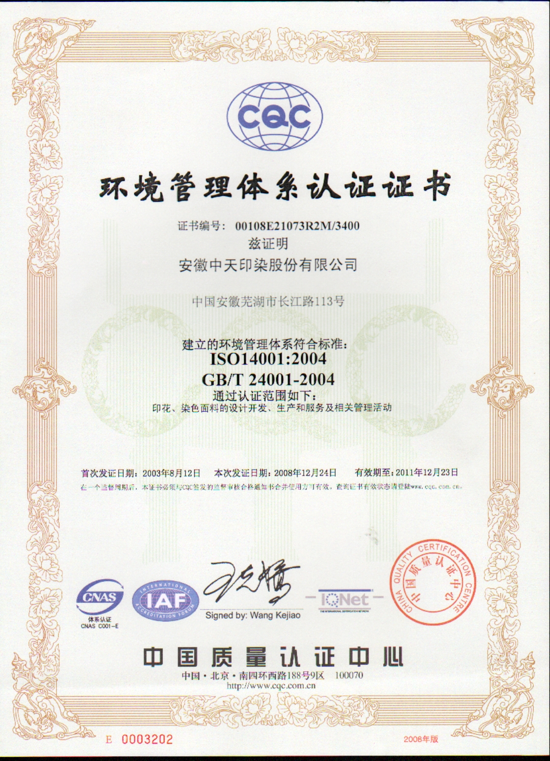 2008年榮獲環(huán)境管理體系認(rèn)證