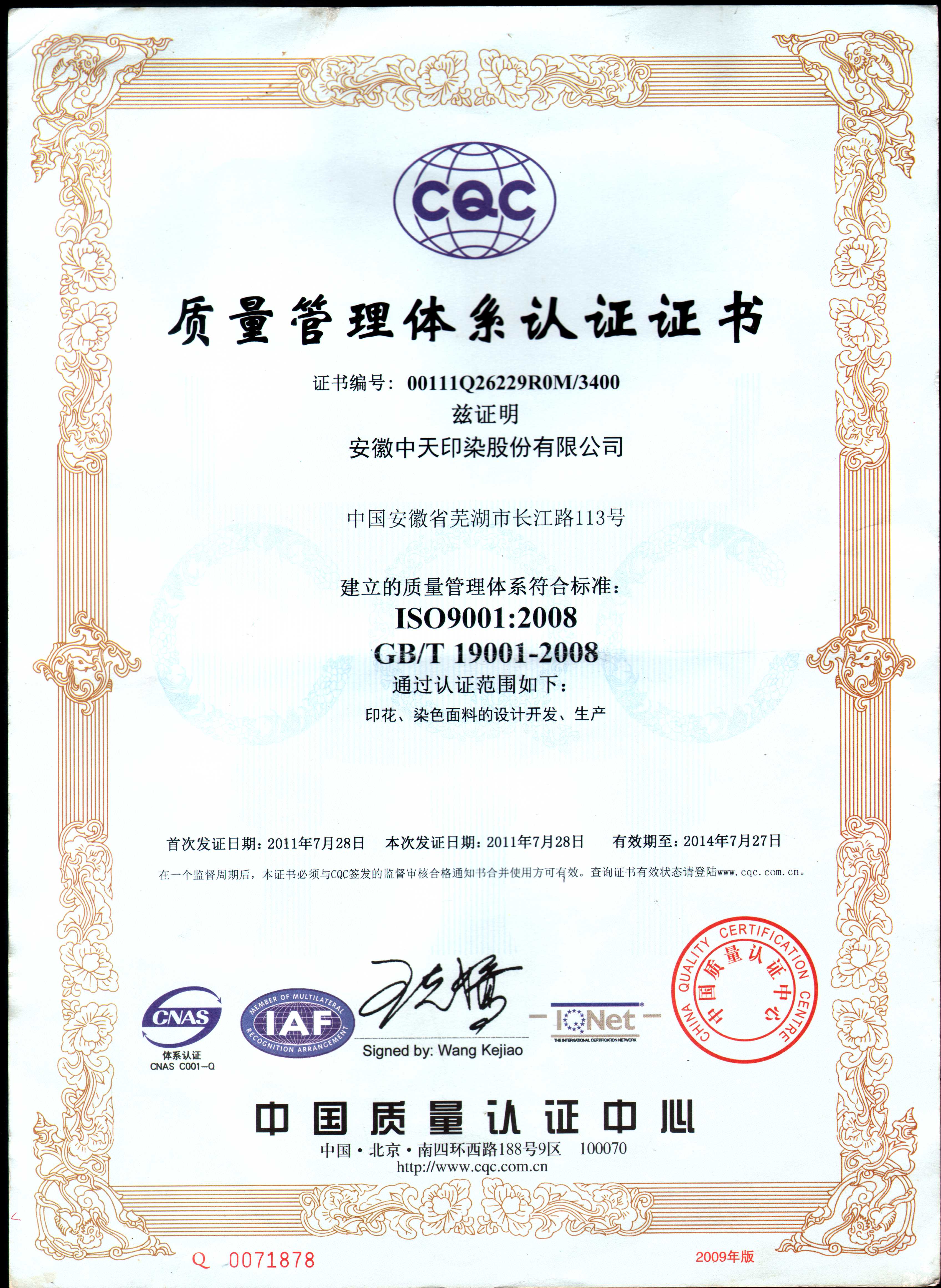 2011年榮獲質(zhì)量管理體系認(rèn)證